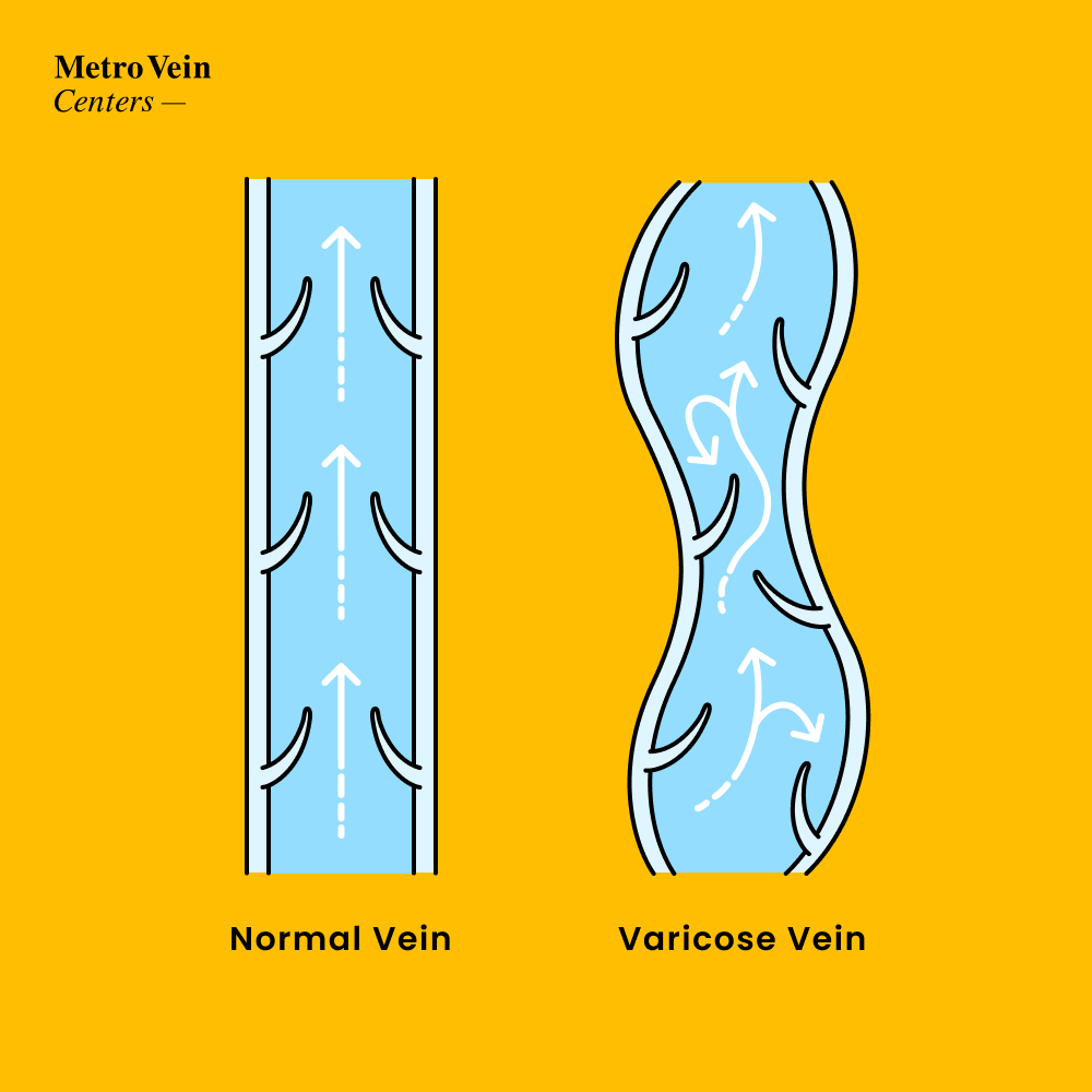 In a problematic vein, the damaged valves start to leak, allowing blood to flow in both directions. This causes fluids to build up inside the veins and not know where to go, which is why varicose veins can be bulging, raised, twisted, and painful.