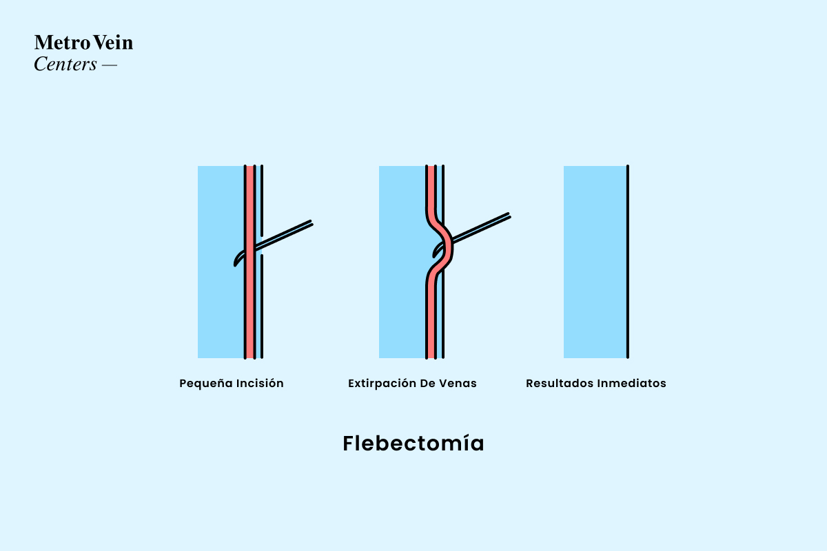 La microflebectomía: Es un tratamiento aprobado por la FDA para venas con problemas en las piernas. Durante este procedimiento realizado en un consultorio, un médico especialista en venas eliminará la(s) vena(s) con problemas mediante microincisiones y varios instrumentos muy pequeños. El tratamiento dura menos de 30 minutos.